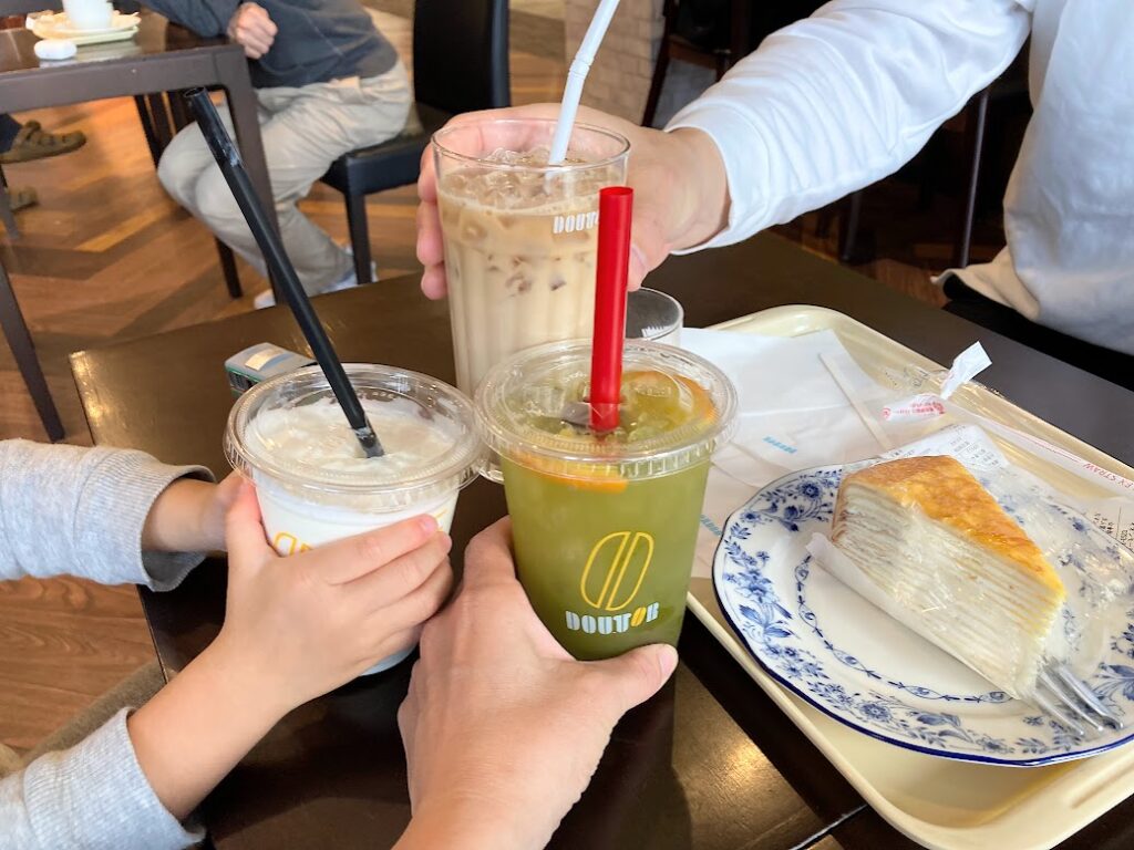 2時間もすると喉が渇いた&足も疲れたということで、モール内のドトールで一休み。