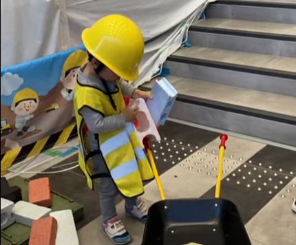 帰りがけ、子ども向けの「働く車で遊ぼうコーナー」がありまして^^;
