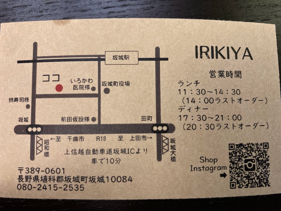 少し前に坂城に住む親戚から、「IRIKIYAと言うレベルの高いイタリアンのお店ができたんだよ」と聞いていました。