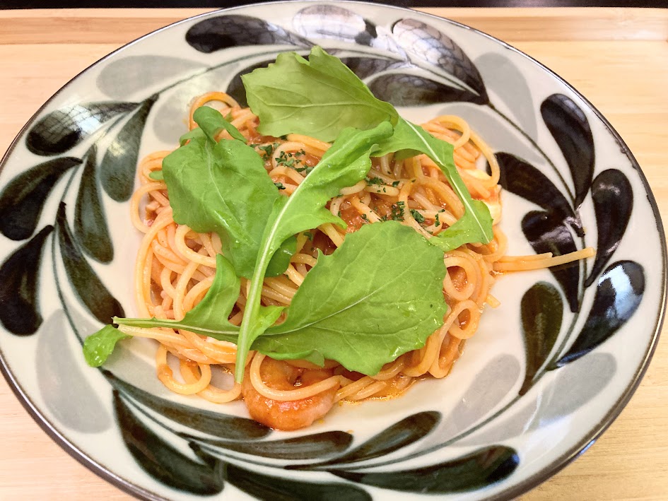 そして、パスタ!!パスタの上に乗っているのはルッコラ。