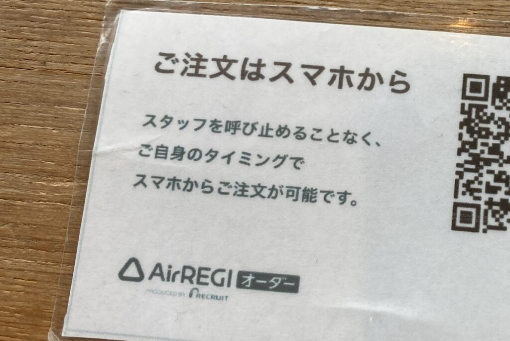 オーダーは、QRコードを読み取って自分のスマホから注文するスタイル。