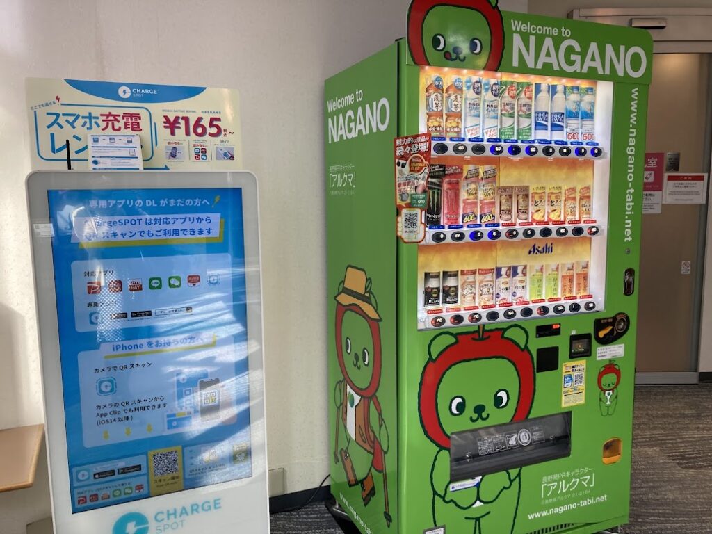 有料だけど充電スポットや自販機もあるし、マッサージチェアも、ガチャガチャまでずらり。