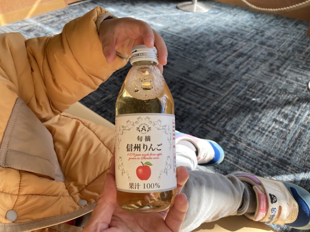 中には自販機もありますが、おたいこは駅内コンビニで買ったおしゃれりんごジュースを持参。