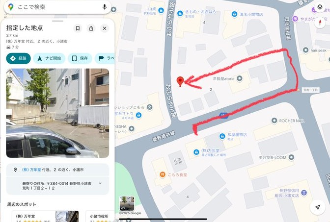 小諸駅からの商店街を5分ほどまーっすぐ登ってきた感じのところにあります。