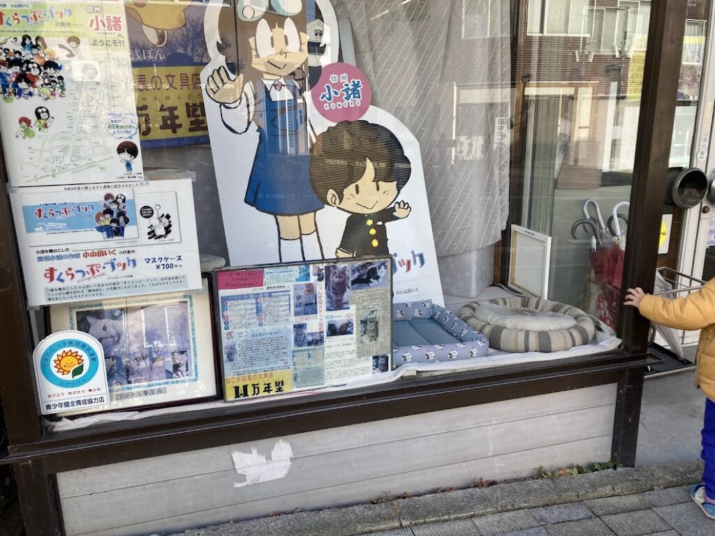 「猫がいる文房具屋さん」としてメディア露出も多い、小諸市の万年堂さん。