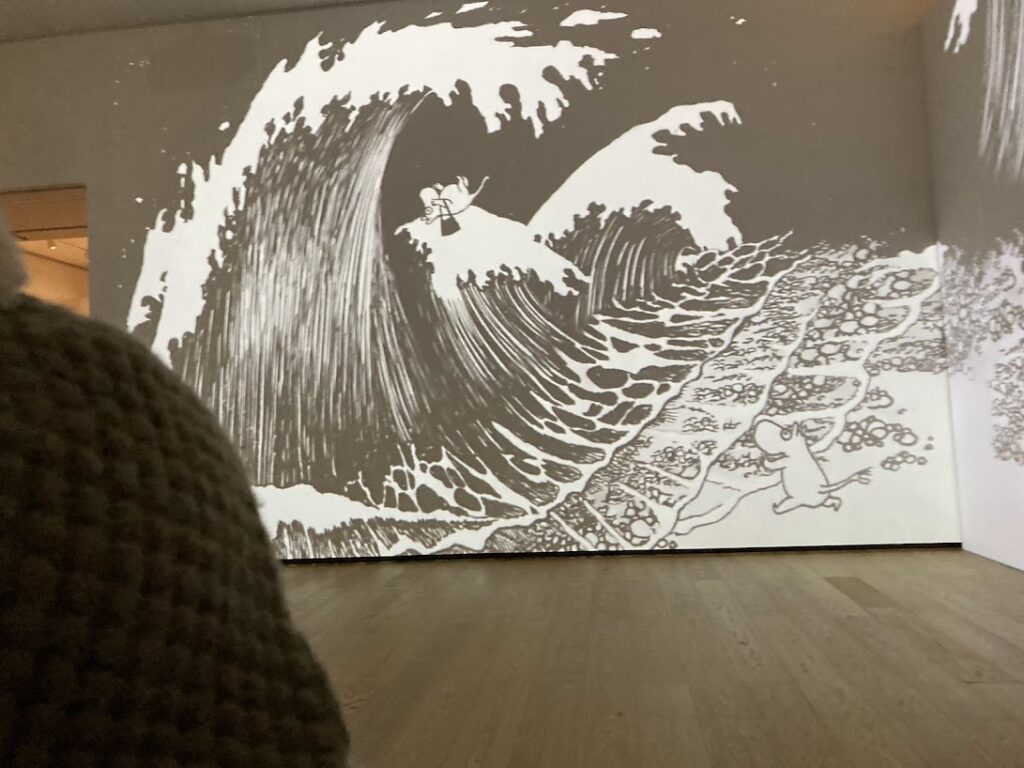 ムーミンの作者として知られるトーベ・ヤンソンですが、この展覧会では初期作品や社会風刺画、壁画など幅広い表現に触れることができます。前半は作家としてのトーベ・ヤンソンの歩みを、後半はムーミンの世界をじっくり紹介する構成で、展示点数も豊富。子ども連れでの駆け足鑑賞でしたが、それでも大満足!