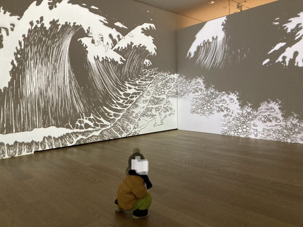 うちの3歳児は動く絵画に魅了され、その作品と周辺は結構じっくり見られました!