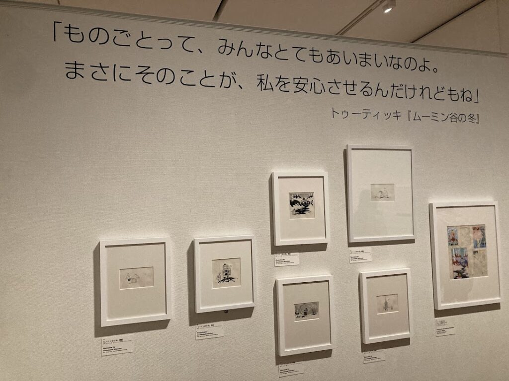 中にはムーミン作品が、キャラクターの言葉とともに展示されていました。