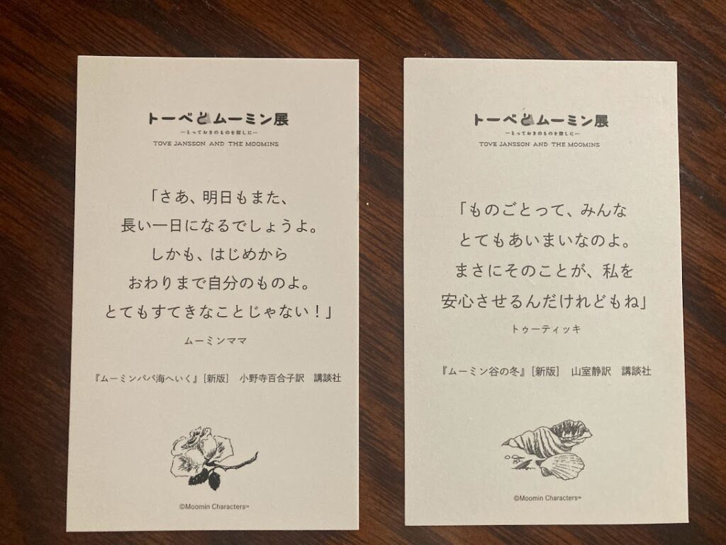 スナフキン、ムーミンママなどの主要キャラのもありましたが、わたしはもちろんトゥーティッキさんの言葉を選びました✨
