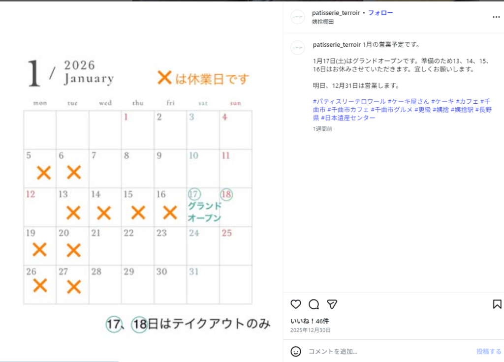 2026年1月17日にグランドオープンする千曲市八幡の「パティスリーテロワール」。