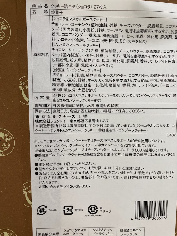 まず、こちらのチーズサンドクッキーすべて=3種が楽しめる詰め合わせを選びました。