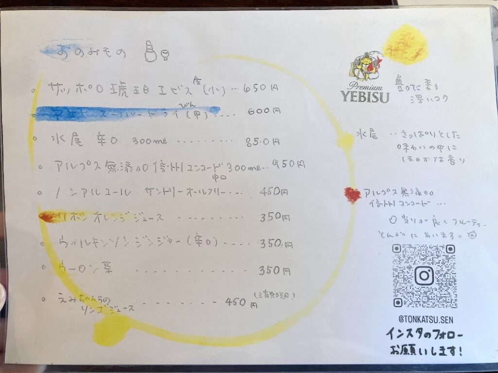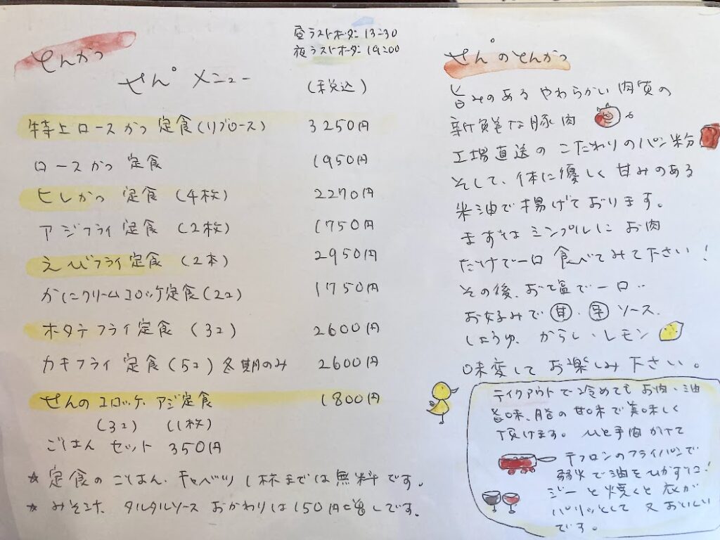 とんかつせんメニュー詳細