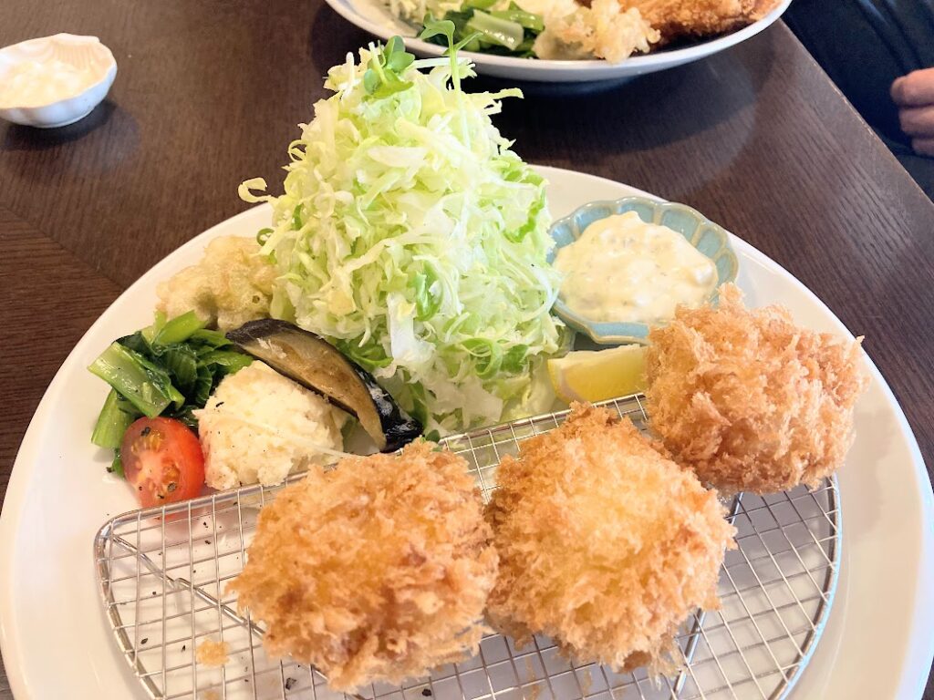 断面図がないのですが、中心はほのかに火が入っている程度の、ジューシーな絶妙な揚げ加減がたまりません✨